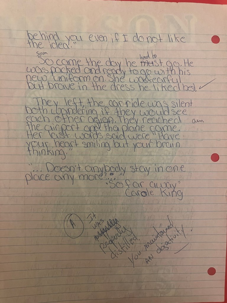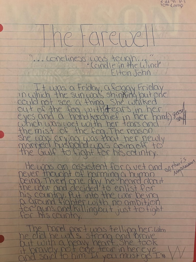 Here is the story that finally allowed me to go into honors AP English my senior year.